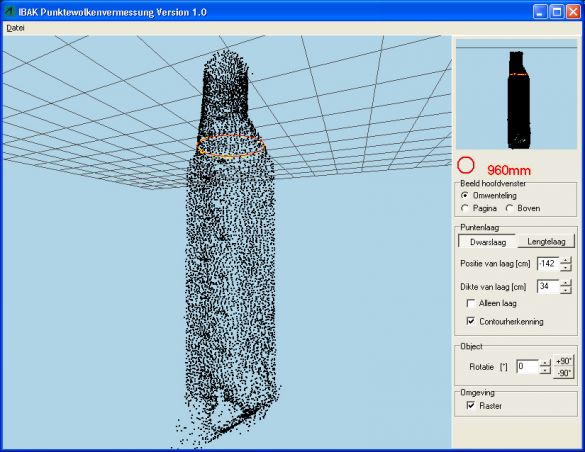 Dankzij de speciale software kunnen we de hele geometrie van de put direct vanuit de 3D-beelden berekenen. Dit gebeurt op basis van een groot aantal vastgelegde punten. Zo is het mogelijk om bijvoorbeeld een aansluitleiding op te meten door een paar punten op de voeg te plaatsen. De software berekent dan zelf de vorm in 3D en geeft de afmetingen weer.
