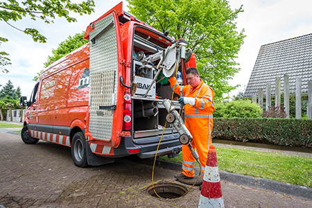 Per oplegger richting de rioolput